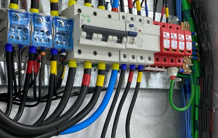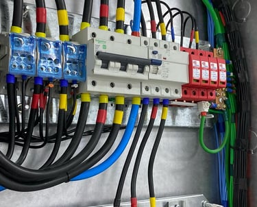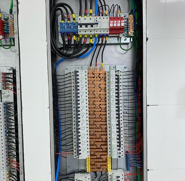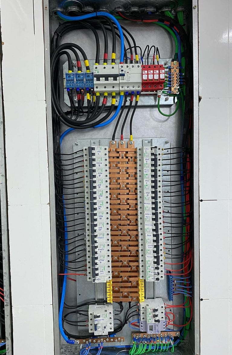 Disjutores e dispotivos de proteção de alta qualidade provendo segurança. Usamos blocos de derivação onde disponhamo a organização nas derivações de potência.