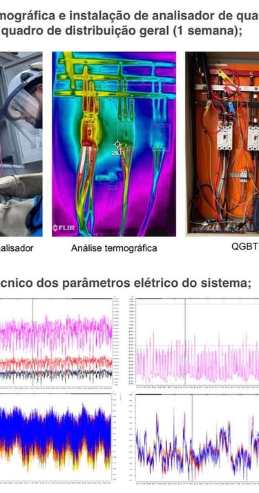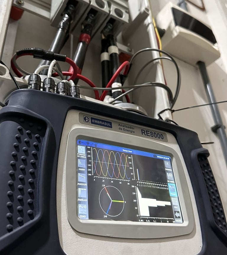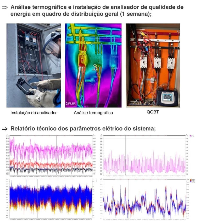 Instalação de um analisador de qualidade de energia e, posteriormente, geramos um relatório detalhado sobre o desempenho energético