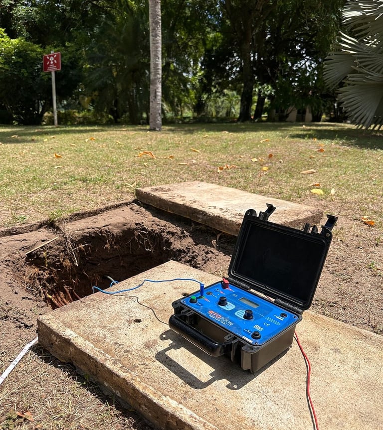 Teste de resistência de aterramento, para construção de uma subestação